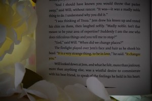 I liked the plot, don’t get me wrong. I thought it was brilliant to incorporate the concern and anxiety many had at the advancements that the Industrial Revolution brought to the public. The clockwork creatures were unique, and I think it was great that they seemed to change and evolve each time the characters saw them. I think what Cassie does best is melt the magic of the Shadow World into the mundane, and this was another perfect example of that. As the world surges forward into a more technologically and mechanically developed age, evil is bound to be stirred up and evolved, as well.