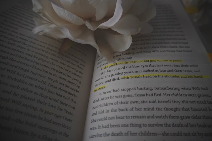 Side note! Another moment that made me cry in the epilogue was when Jem told Tessa that, even though he was mortal now, he couldn’t bear to be a Shadowhunter without Will by his side. It punched me straight in the heart.