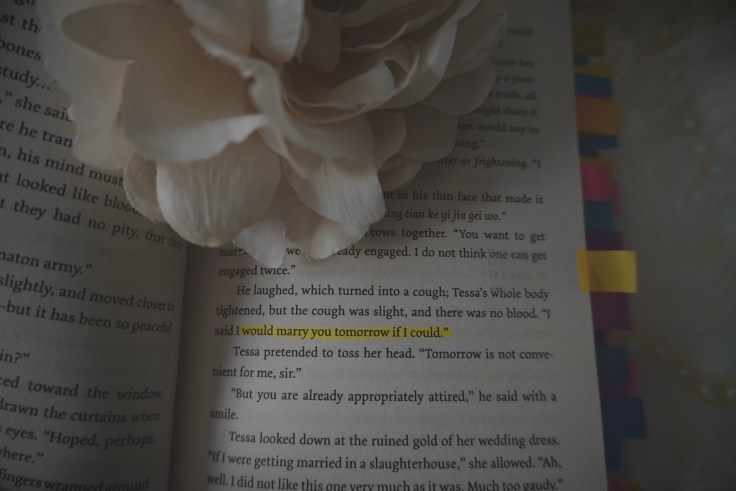Here’s a side note inside a side note. I loved how when Will was trying to properly court Tessa, she was just annoyed. She didn’t want a proper gentleman, she wanted the goofy, sarcastic, fun-loving Will that she fell in love with. Also, “Of course you can have a true Shadowhunter name. You can have mine.” is such a Herondale way to propose. It’s perfectly in character for Will to first be bullied by Jessamine about his relationship and then blurting out this statement in the heat of the moment. I loved it.