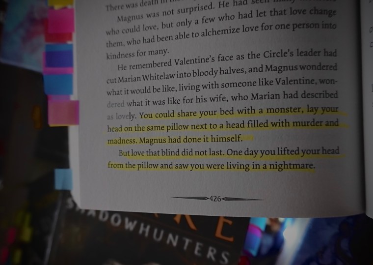 “Many of them were heartbreakingly young, a brand-new generation of Shadowhunters, shining new warriors who had just reached adulthood. Magnus was not surprised, but he found it sad and infuriating, that they should throw the bright beginnings of their lives away on this senseless hate.”