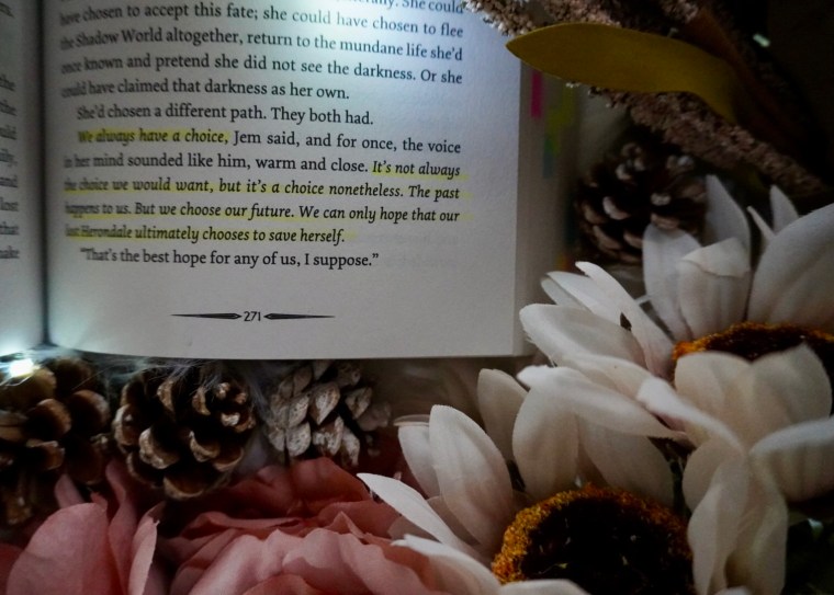 “If I took the place of whoever the baby is going to be, if I wanted a do-over, it wouldn’t hurt Tessa and Jem at all. They would be good parents to me. And I would be a good daughter. I was good when I was alive! I could be good again. And it isn’t fair. I shouldn’t have died. I ought to get another chance. Why shouldn’t I have another chance?” (531)