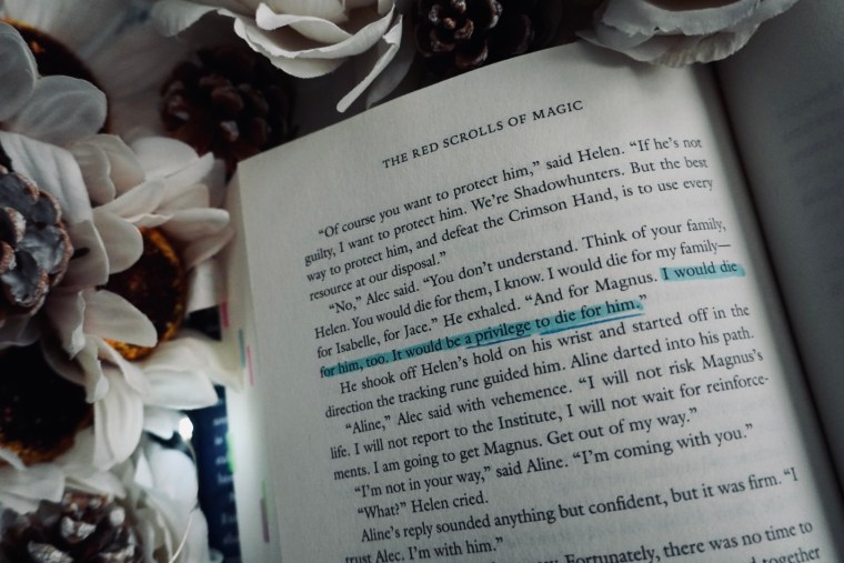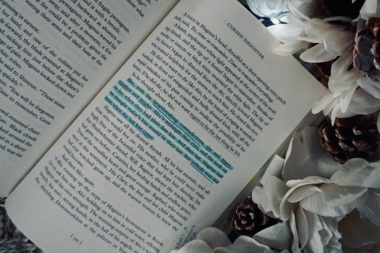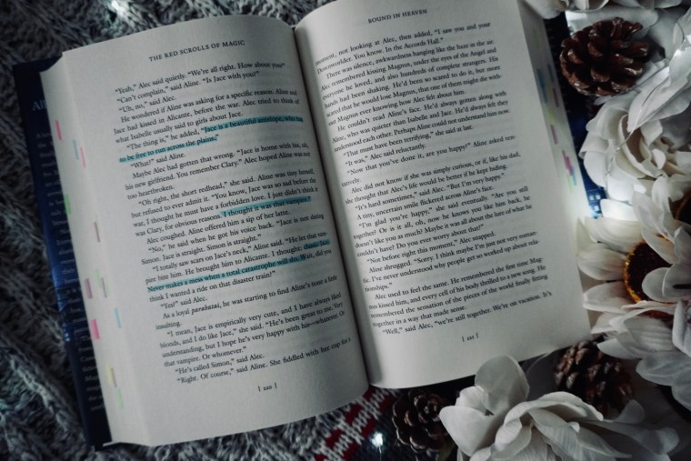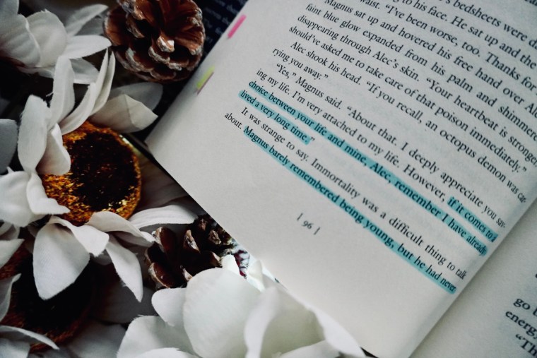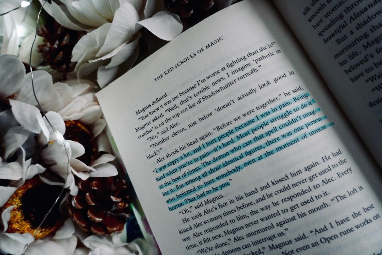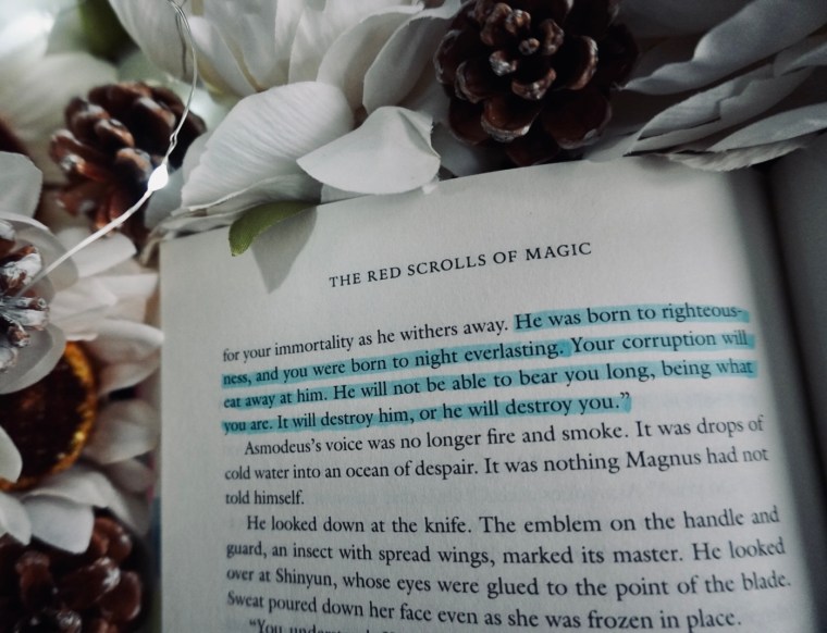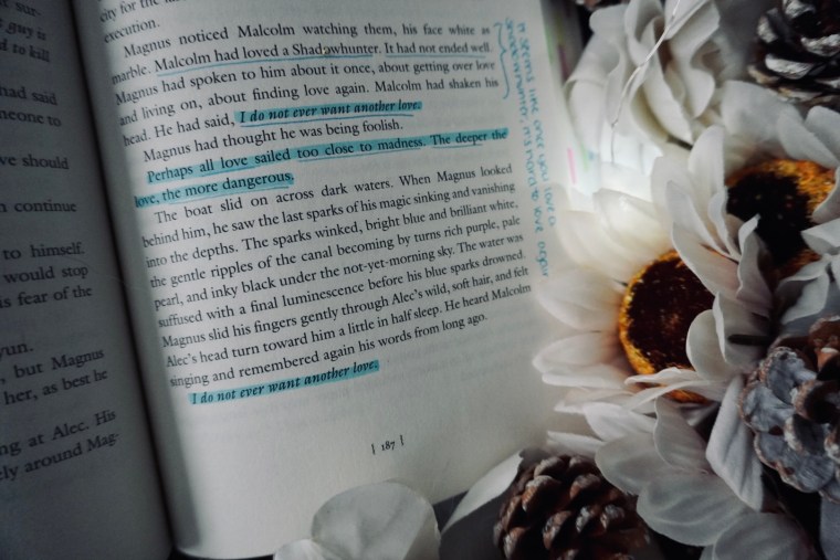 “Alec wondered if loving a mortal was like that to Magnus, bright but brief. Maybe this was all just a short, insignificant episode in a long, long story. He wasn’t just an open book, he thought. He was a short one. A slim volume compared to the chronicles of Magnus’s long life.” (201)