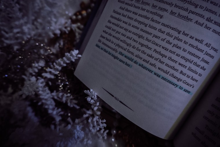 These “Grace” chapters fulfills three essential jobs for readers: they show Grace’s upbringing with Tatiana, it establishes the bond between Jesse and Grace that has made the girl so desperate to resurrect her brother, and it allows for readers to sympathize with Grace as we learn how hurting James hurt her, as well.