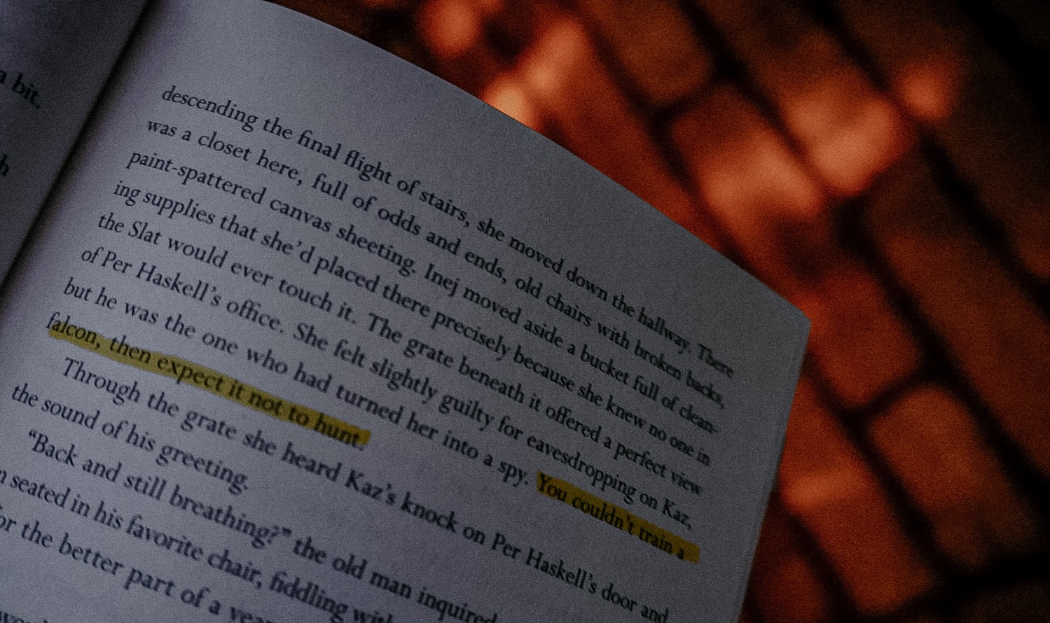 This opening scene is perfect in showing readers that Kaz is a schemer, he’s smarter than the average Barrel Boy and he expects his team to have a lot of trust in him without giving them the same courtesy. He’s constantly building a never-ending plan that he doesn’t divulge the full details for. He’s collecting information to use later.