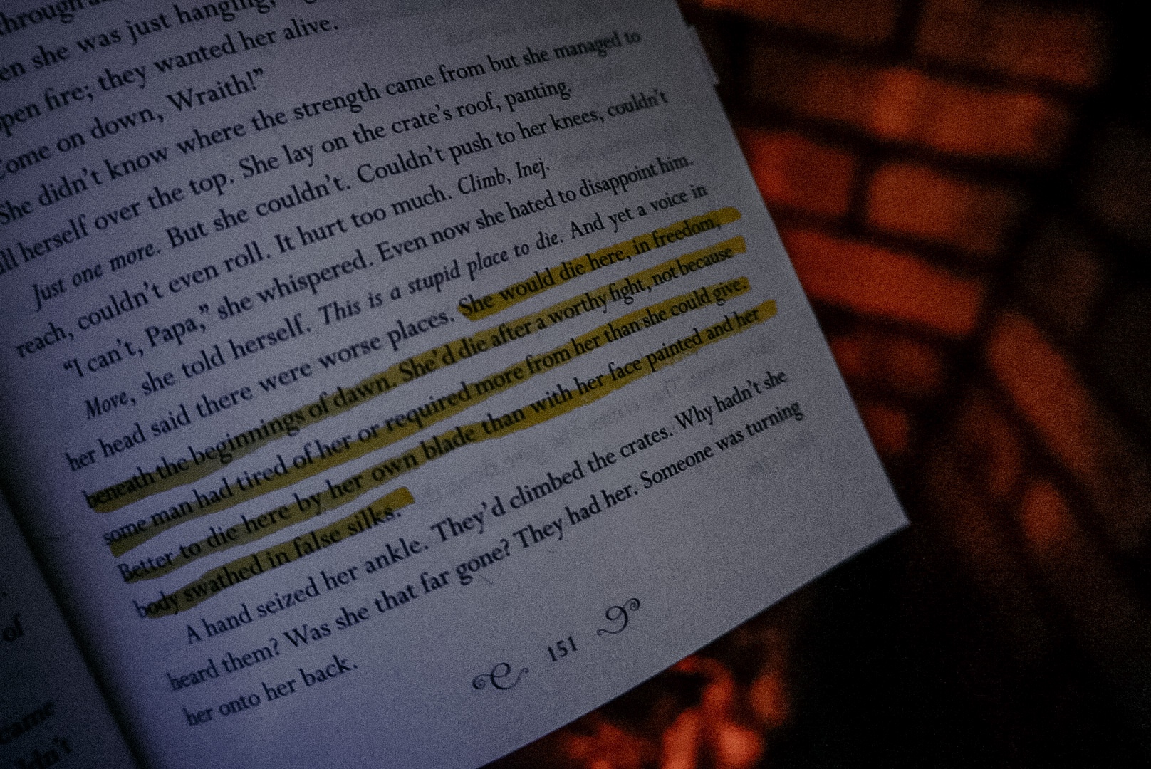 “If it were a trick, I’d promise you safety. I’d offer you happiness. I don’t know if that exists in the Barrel, but you’ll find none of it with me.” (308)