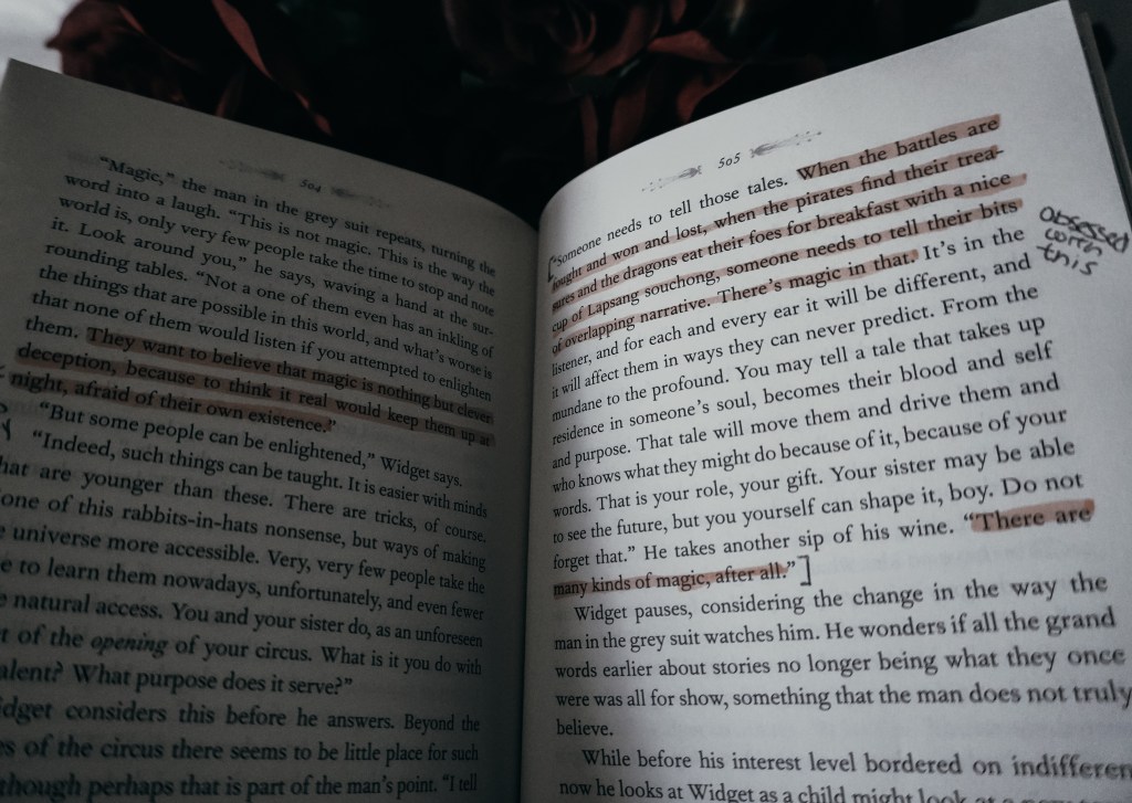 The structure of this book was absolutely phenomenal. I was obsessed from the beginning to the end with how Morgenstern formatted this story. When you look at it in black and white, it can easily become confusing. It’s not a linear timeline and readers are thrust from second-person POV to third as the story bounces around years and characters and plot lines. However, Morgenstern made it work. The sections which end up being Widget’s story to Alexander, were so incredibly immersive in bringing the circus to life throughout the novel and wrapped up everything so poetically. The way the story shifted between years as it went from Marco/Celia POVs to Bailey’s made the setting feel more eternal and added to the theme of time being uncontrollable and unreadable despite all the talents to see glimpses into the future and past.