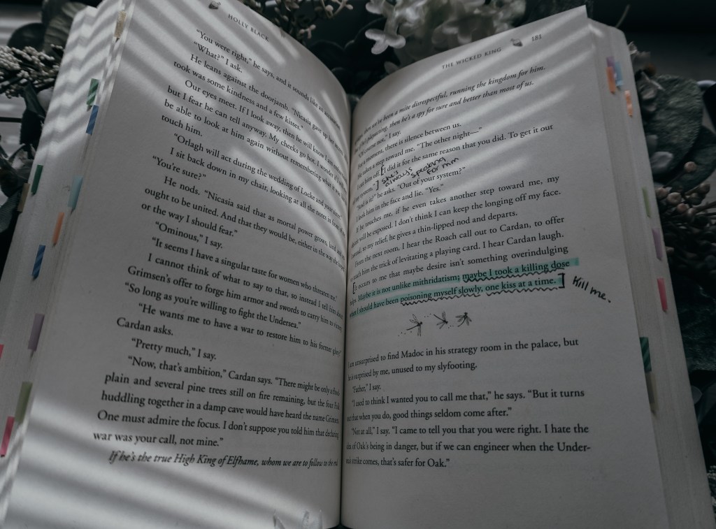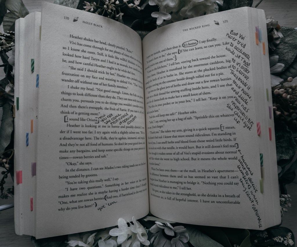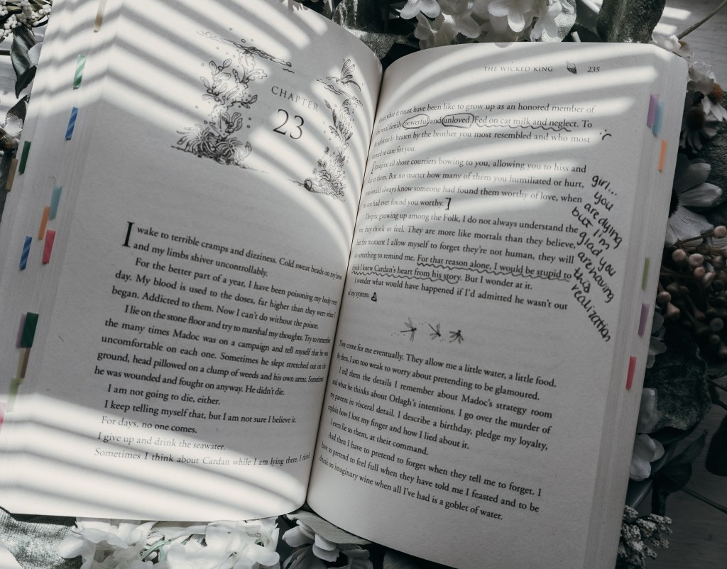 And a non-spoilery review: The Wicked King is an intricately laid trap of a story. A scheme full of schemes that throws readers for loops just as they settle into the ride. Jude and Cardan’s complicated relationship is messy and annoying in the most fun way, the political and moral hoops Jude must leap through are compelling, and the plot is so exquisitely detailed without needing unnecessary distractions to move it forward. It’s a beautiful balance between character work — as Cardan becomes more human and Jude tries to strip her humanity away — and hard, well-thought out plot work that creates a maze to easily get lost in without ever wanting to escape.