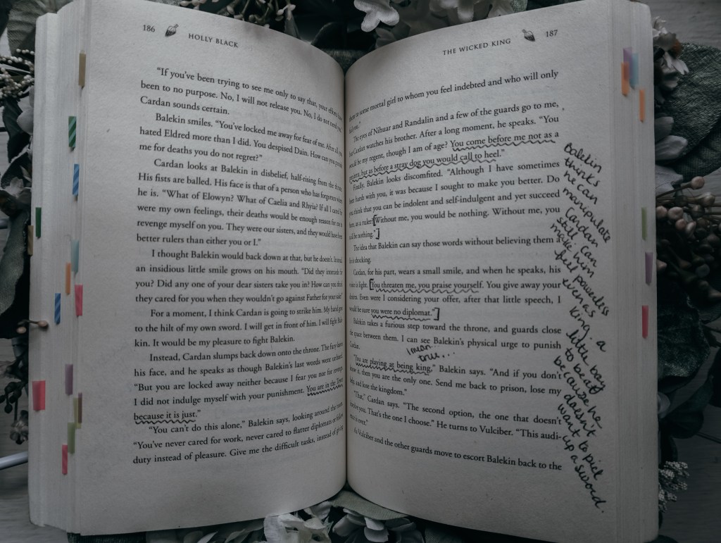 - TWK reminded me so much of the Six of Crows duology solely because of the effort put into plotting the details. Schemes require such good writing to be executed well, and Black did it perfectly by making sure every detail related back to the story. Black did this with simplicity. She didn’t add unnecessary subplots to run readers in circles to deviate attention away from what’s actually happening. No, Jude is much too attentive of a narrator, and she’s our only narrator. The blacksmith, the queen of the sea, Balekin, Cardan’s mother, etc. all could have had really involved individual subplots, but Black made the right choice by weaving them into the bigger picture of this fight for the crown and power. They are pieces of the puzzle rather than framed photos on a gallery wall. Perfection.