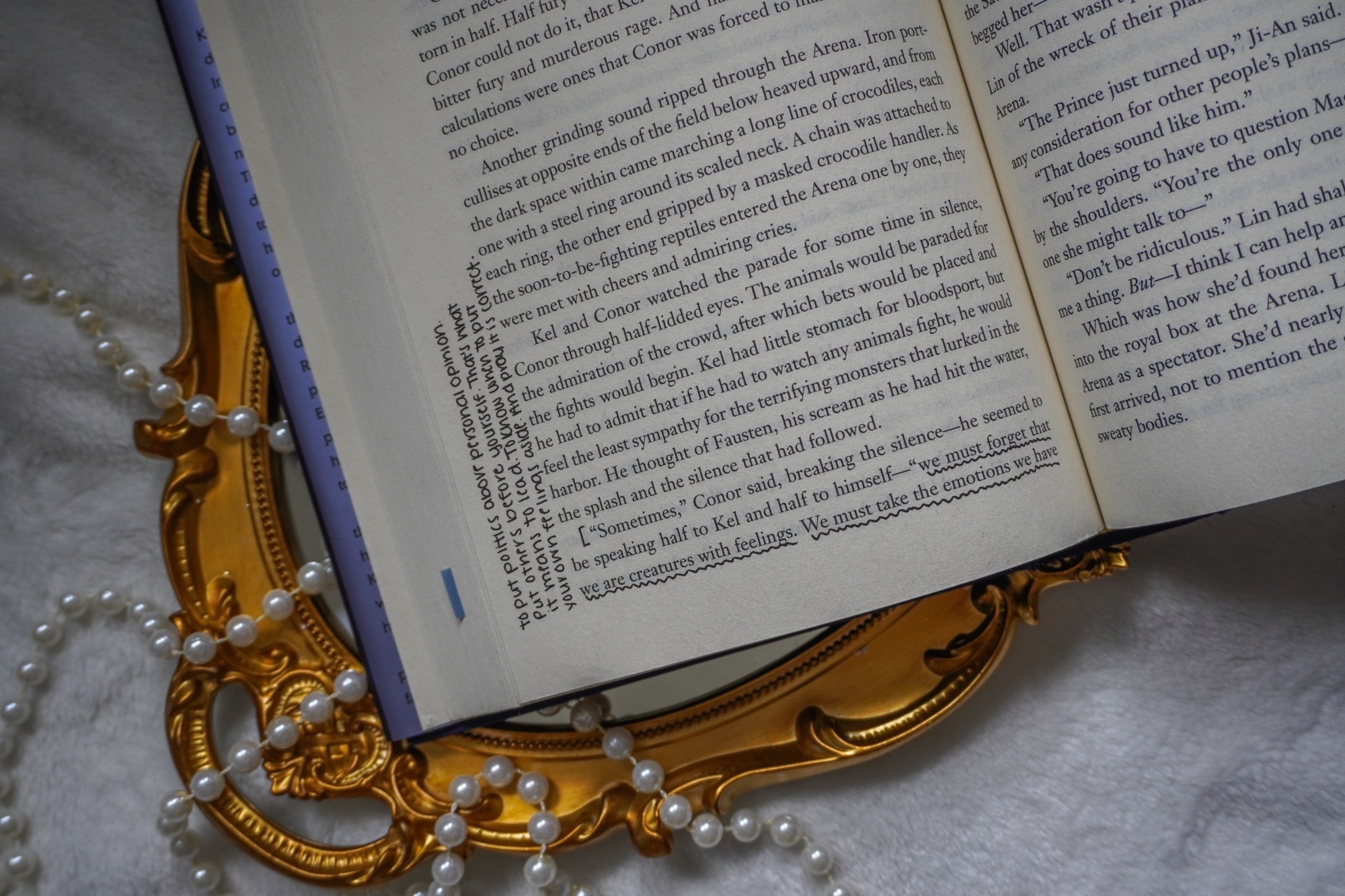 - pg. 530 // Kel is so aware of this world he grew up in that he can’t even be angry at Conor. He understands duty and responsibility more than anyone, and Conor is not the enemy.